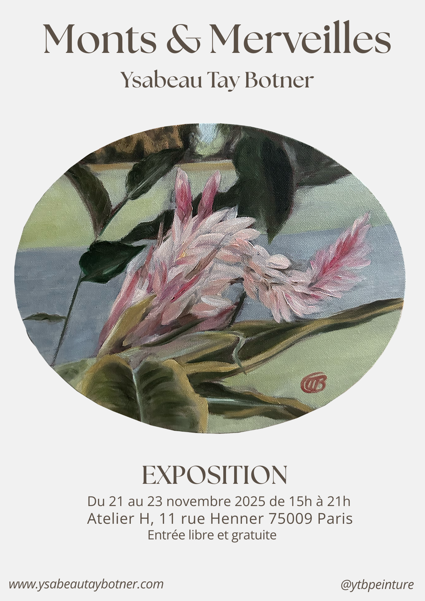 “Monts & Merveilles”. Exposition du 21 au 23 novembre 2025 de 15h à 21h à l'Atelier H, 11 rue Henner, Paris